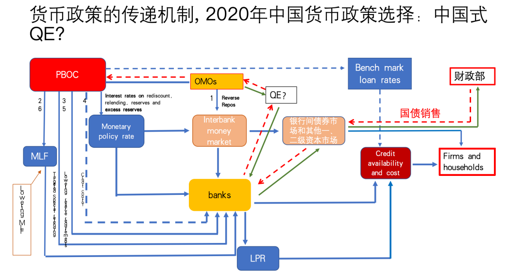 下面这图大致概括了中国的货币传递机制。下图概括了央行在过去执行货币政策的几个主要途径:
