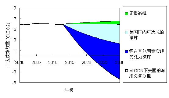 图1. 发达国家(以美国为例)的减排责任以及分配: